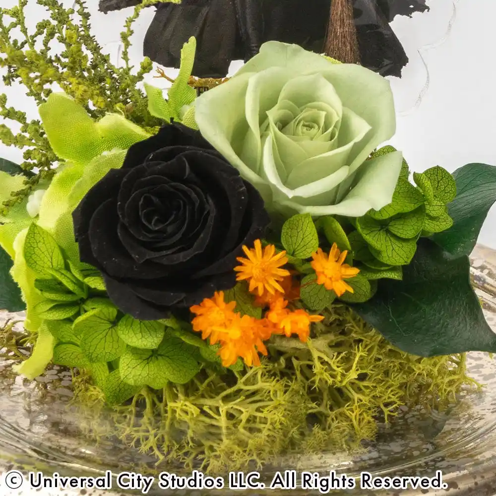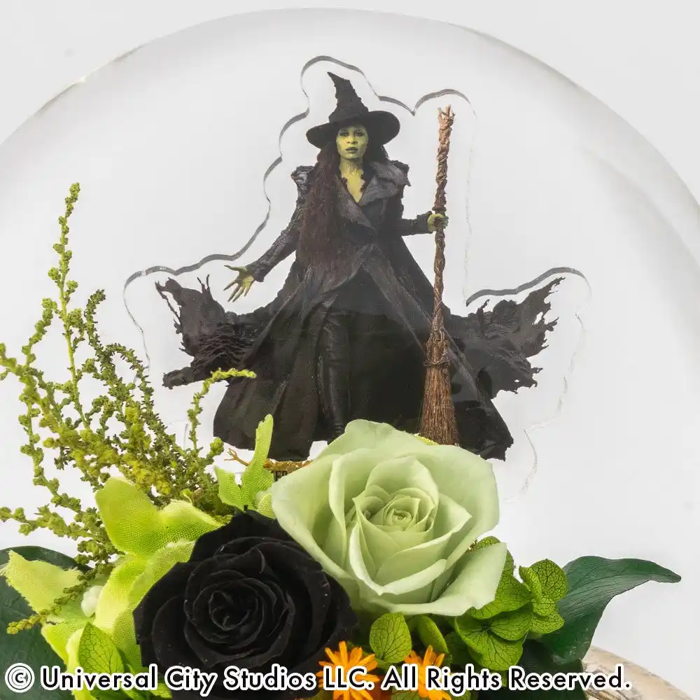 惹きつけられるのは、凛としたグリーンの魔法。自分らしく突き進むエルファバの強さを、鮮やかなグリーンのバラに込めて。ガラスドームの中に閉じ込めた神秘的な美しさは、まるで映画のワンシーンを切り取ったみたい!「人とは違う自分」を大切にする、そんなあなたの背中を押してくれる特別なフラワーアイテムです。 |