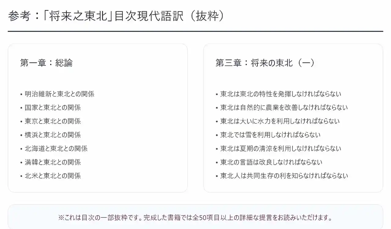 スパークル株式会社(本社:宮城県仙台市、代表取締役:福留秀基)は、1906年(明治39年)に出版された実業家・半谷清寿(はんがい・せいじゅ)の著書『将来之東北』を、最先端のAI技術と第一線の学術監修を用いて現代語訳し、復刻版として出版するプロジェクトを開始いたします。 |