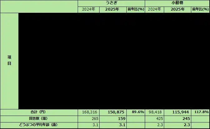 | ■ うさぎ:年間150,875円(前年比89.6%) | |||