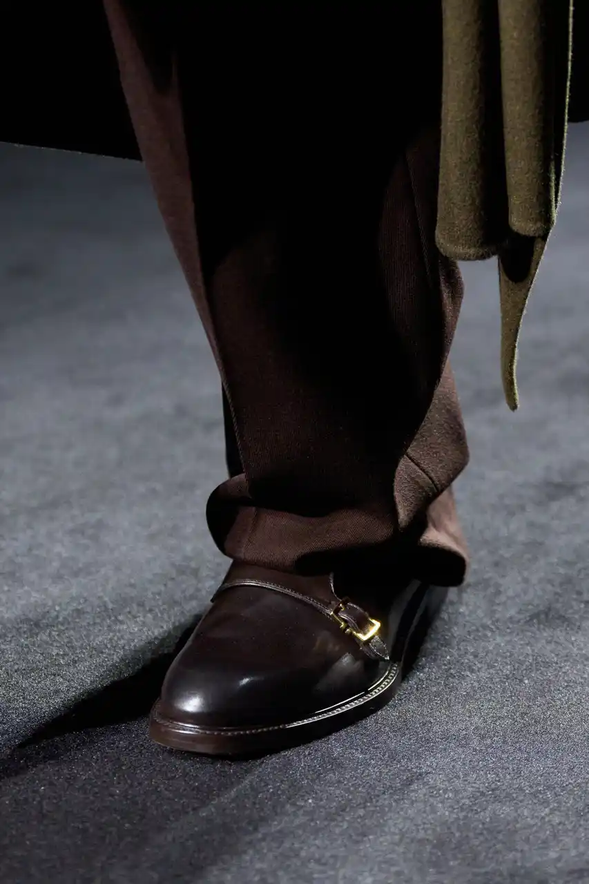 メンズのフット ウェアでは、フォーマルなオックスフォードシューズが現代的な視点で再解釈され、細長いプロポーションやエプロンステッチのトゥが特徴となっている。また、「ハグ」クロージャーで留めるモンクストラップや、クリーンでミニマルな ブーティも展開する。 |