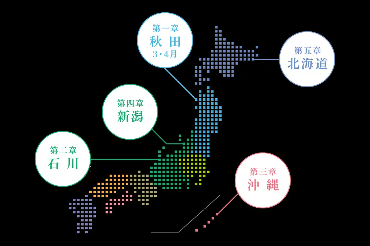 秋田(2026年3~4月)を皮切りに、石川(2026年5~6月)、沖縄(2026年7~8月)、新潟(2026年9~10月)、北海道(2026年11~12月)と、日本各地の食材を巡ります。 |
