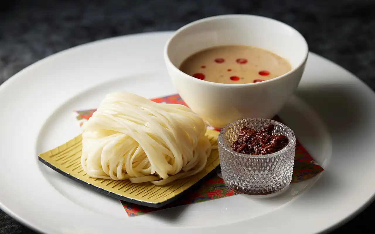 秋田の稲庭うどんを、坦々つけ麺に仕立てにしました。 胡麻の風味をいかしたスープに、肉味噌を加えながら味わいます。 仕上げにホテルメイド辣油の香りを添え、なめらかな麺と奥行きのある味わいを楽しめる一杯です。 |