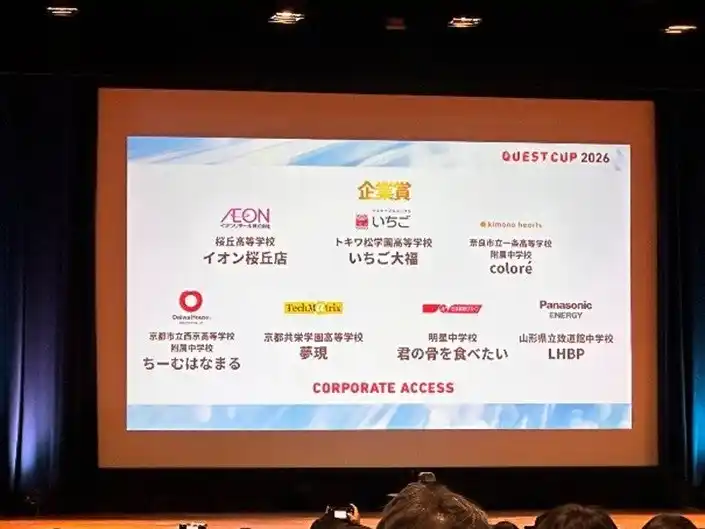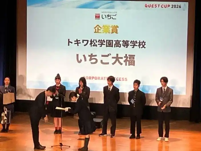 | このたび、本取り組みの集大成となる「クエストカップ2026全国大会」が開催され、当社の課題(ミッション)を探求テーマとして取り組んでいただいた全国の中学・高等学校から選出した8チームが発表を行い、その中から、「いちご企業賞」(1作品)、「いちご準企業賞」(1作品)を決定しました。 | ||||||||||