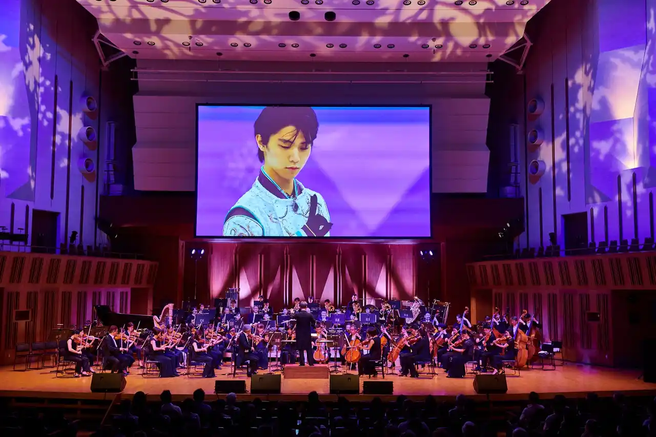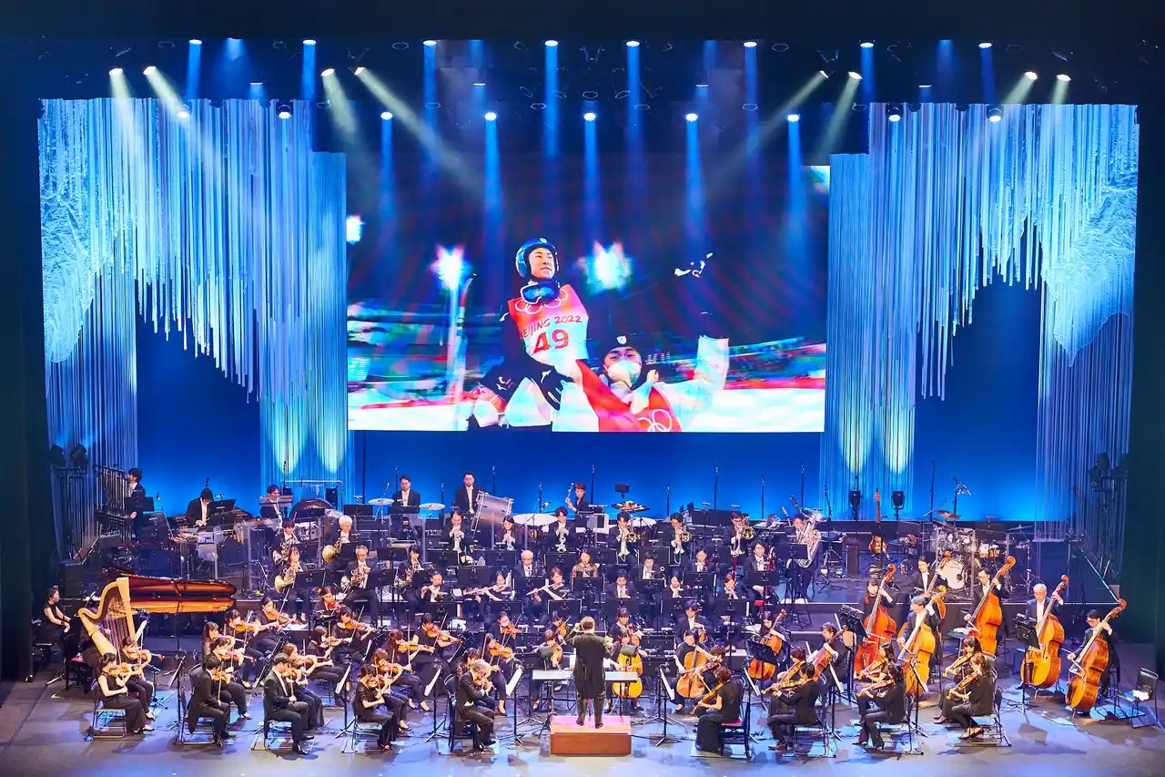 ステージのスクリーンに映し出されるアスリートたちの雄姿と、フルオーケストラが奏でる名曲の数々。 |