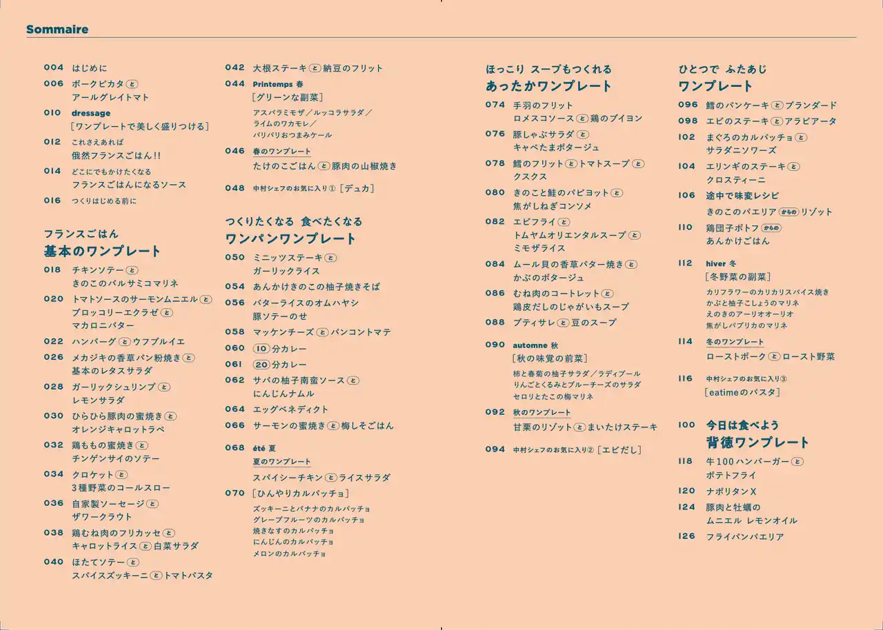 おいしそうだから作ってみたい! と思えるような華やかさと、ワンプレートのなかでも重→軽があり、がっつり食べたい日から、ワインを飲んでつまみたい日までを網羅できるレシピ集です。 |