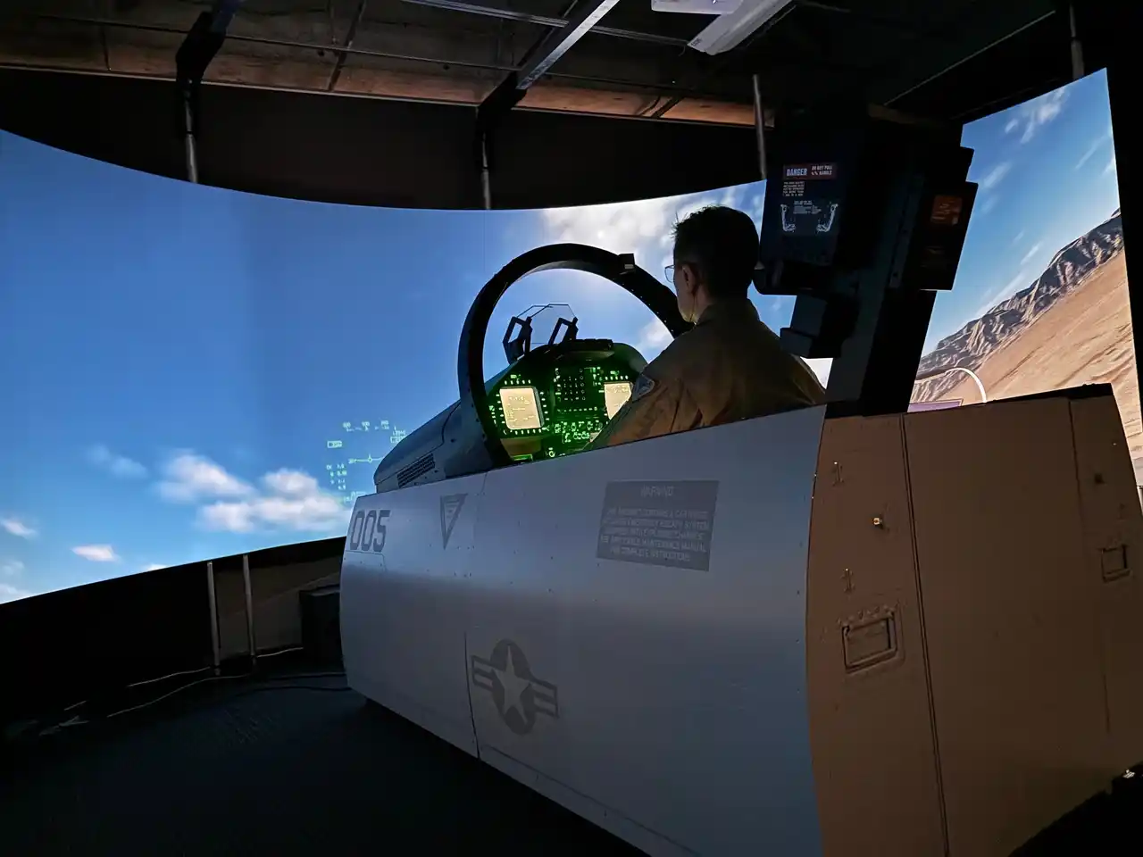 VIPルームのF/A-18コックピットシミュレーター |