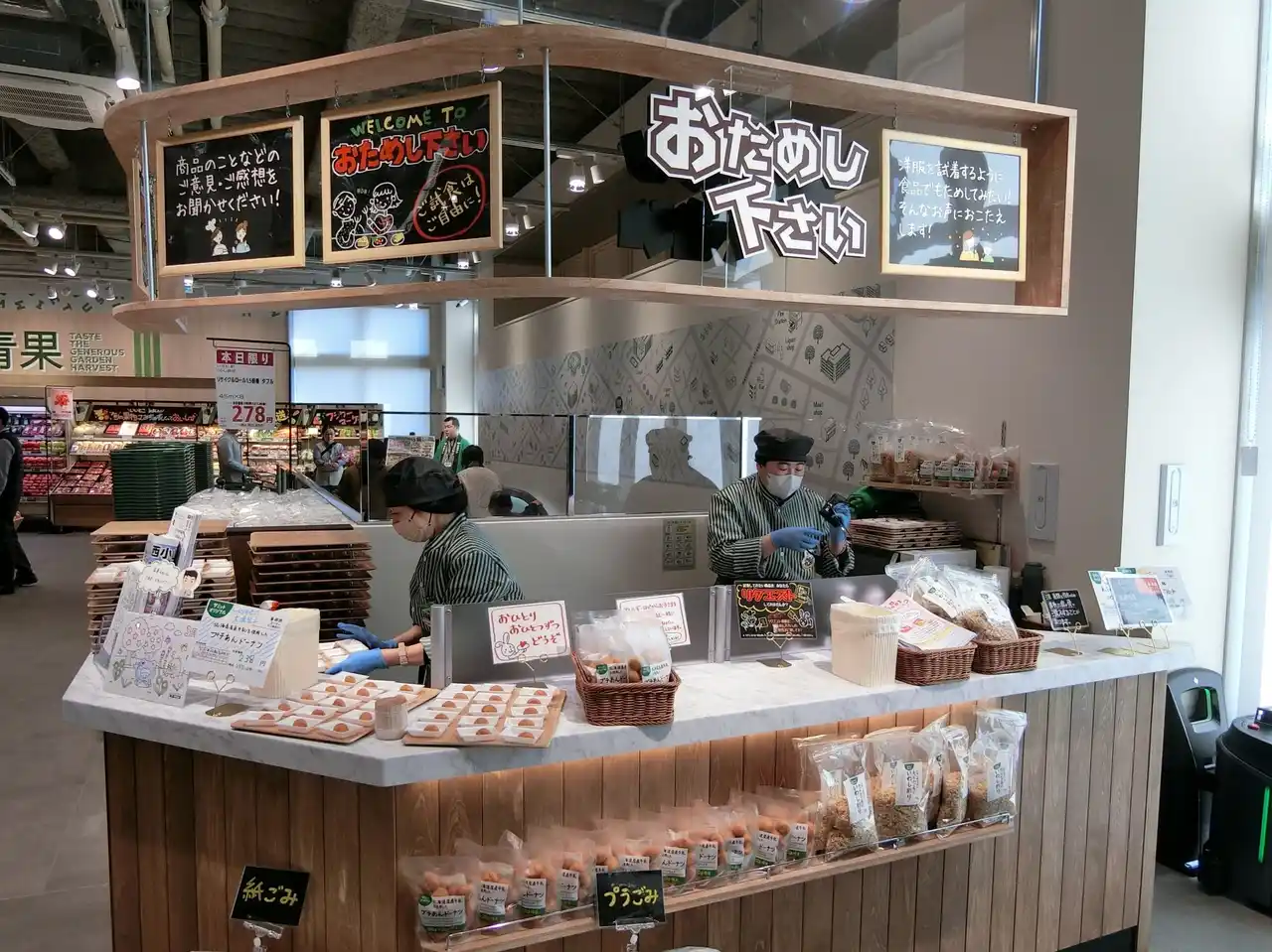 サミットの「案内係」は売場を巡回し、商品やサービスの案内、お買い物の相談対応やサポートもいたします。複数商品を一度に試食できる「おためし下さい」コーナー(2階)では、スタッフがお客様とお話しながら商品を紹介します。 |