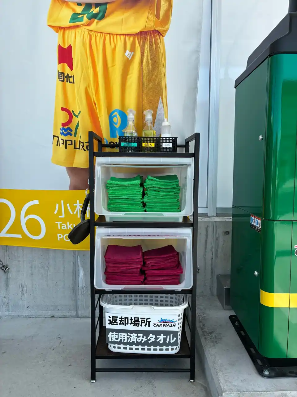 拭き上げスペースには選手幕があり、推し選手の前でピカピカになった愛車と記念撮影をお楽しみいただけます。 |
