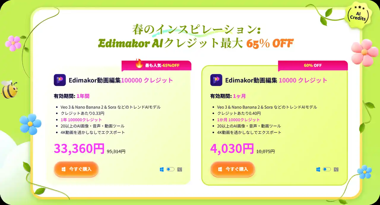 Edimakor-2026春セール-AIクレジット - AI素材を思い切り楽しもう |