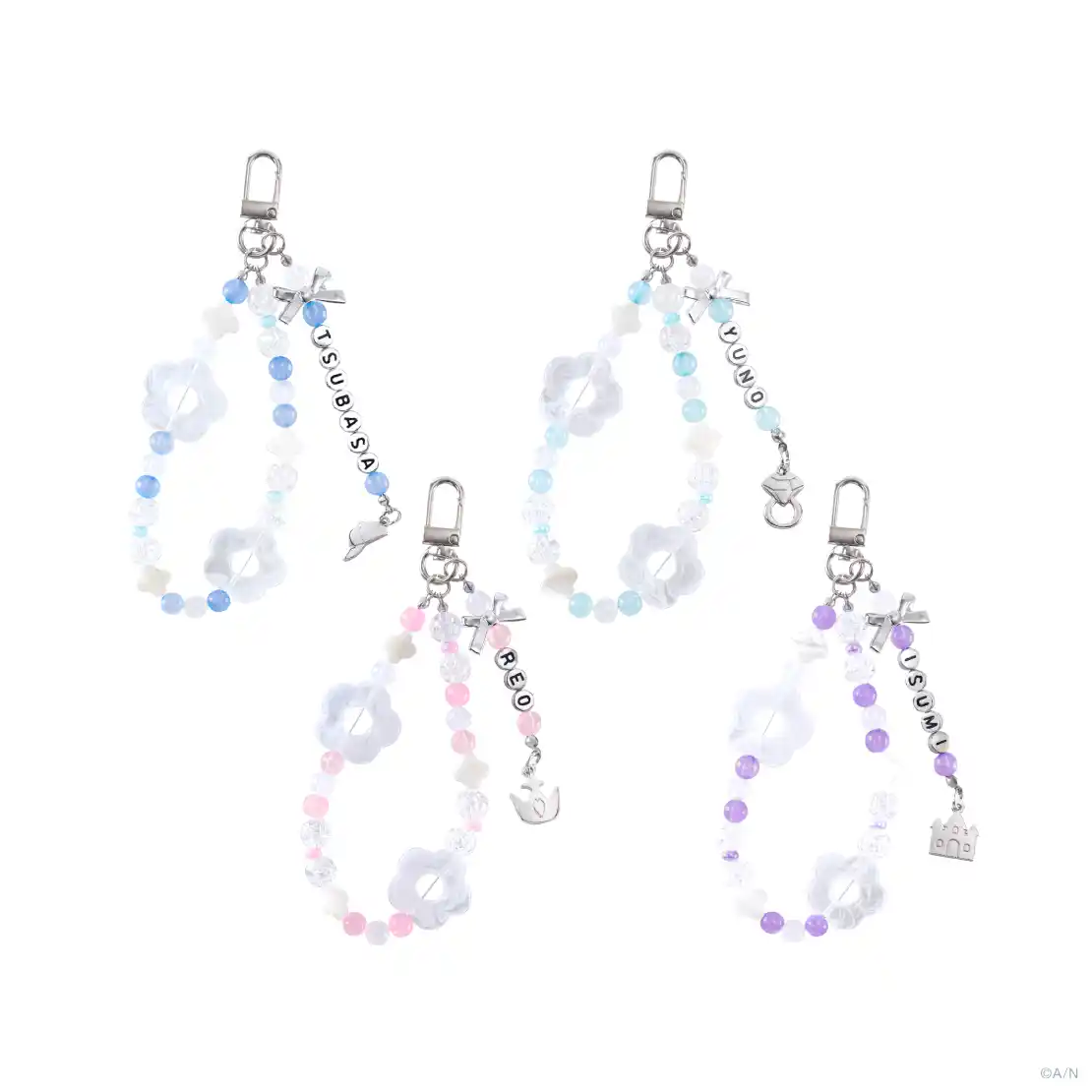メンバーそれぞれのモチーフデザインのトートバッグ&ワッペンバッジセット、ビーズキーホルダー、にじぱぺっとポーチ。 |