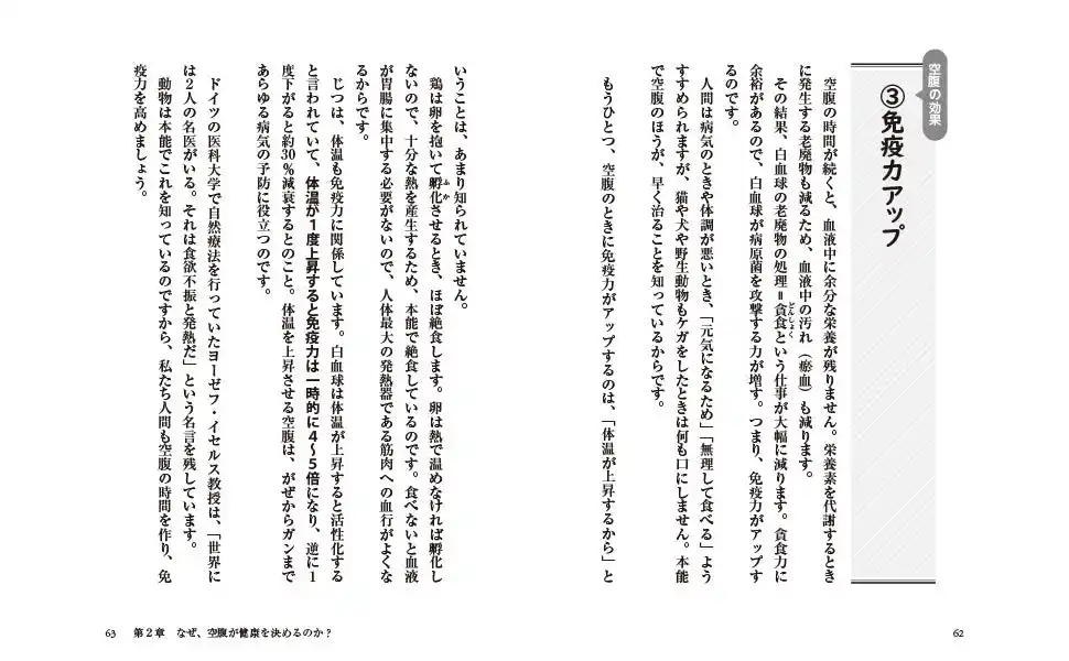 | おすすめは「1日2食」にすることです。そうすることで、病気を遠ざけ、健康になることができます。 | |||||||||