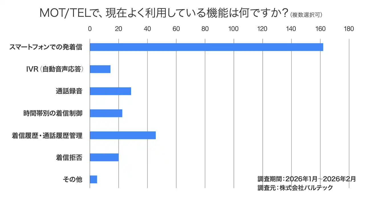 32,000社以上の導入実績を持つクラウドPBX「MOT/TEL(モッテル)」を展開する株式会社バルテック(本社:東京都新宿区)は、自社サービス利用者を対象に「クラウドPBXの導入に関するアンケート調査」を実施いたしました。