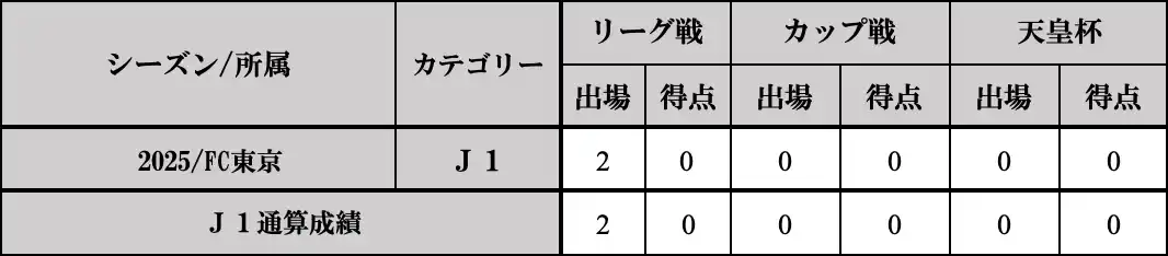 | □ 出場歴(2026年3月11日時点/Jリーグ所属時のみ) | |||