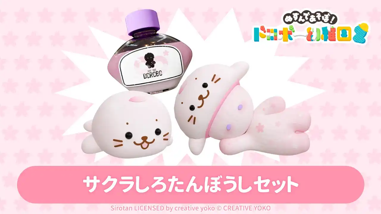 ハルウララ!「サクラしろたんぼうしセット」が期間限定で登場! 春にピッタリな「変色インク(さくら)」と、うららかなお昼寝「よこねんね(なかよしアクション)」もセットになっているよ! |