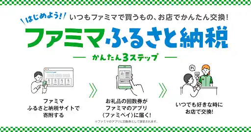 「ファミマふるさと納税」のご利用には、事前に「ファミペイ」アプリのダウンロードが必要です。(詳細はこちら:https://www.family.co.jp/famipay.html) |