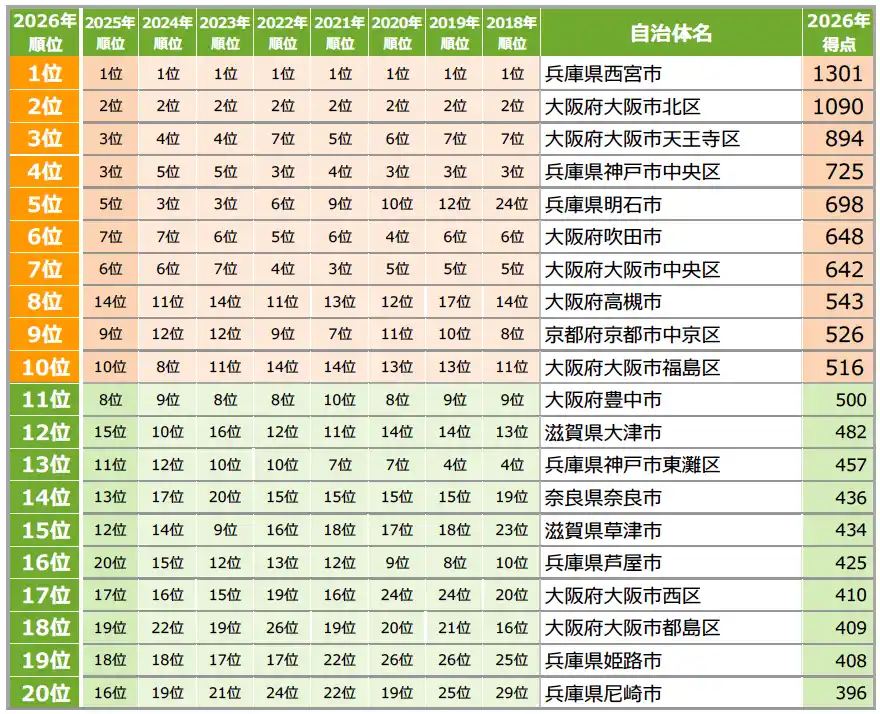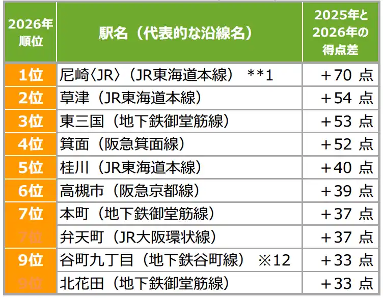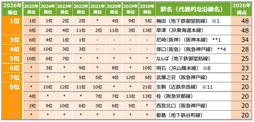 | 1位は5年連続で「梅田」、得点は「尼崎〈JR〉」が躍進 穴場な街ランキングでは「草津」が初の1位に |