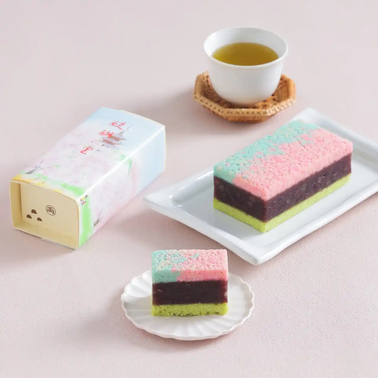 桜が咲き誇る春景色を映した、見た目にも華やかなひと品です。桜葉香る餡のやさしい風味が口に広がり、層ごとにほどける味わいとともに、晴れやかな季節感を楽しめる和菓子です。 |