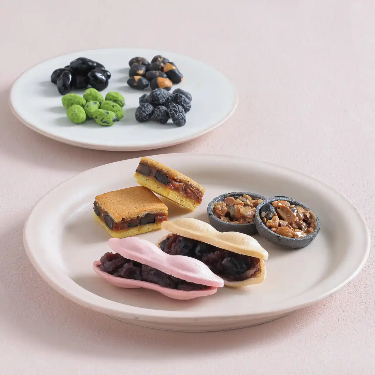 ●バイヤー推奨コメント 桜の香りがふわりと立つ最中皮に、ほくほくとした黒まめと小豆餡のコクがやさしく広がります。一口ごとに、軽やかな最中皮と餡の食感、そして豆の旨みが重なり、春らしい余韻を楽しめる味わいです。 |