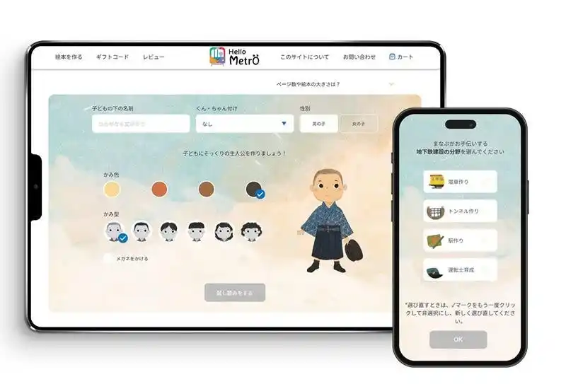 のりつぐ)と一緒に冒険していく内容のパーソナライズド絵本「地下鉄をつくろう!」を2026年3月12日(木)から専用サイト「Hello Metro」( https://hellometro.jp/lets-make-metro )にて販売します。第1弾の絵本とは内容が異なる物語となっていますので、初めての方でも楽しみながら読んでいただけます。