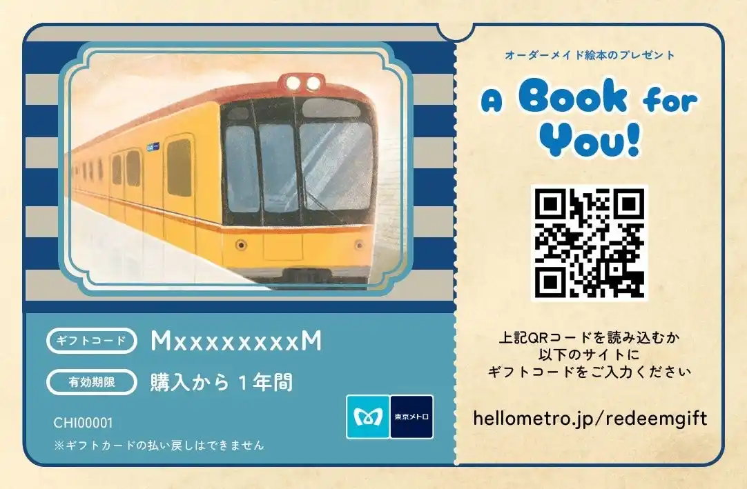 パーソナライズド絵本「僕は私は運転士!」「地下鉄をつくろう!」と引き換えができるギフトカードを、地下鉄博物館(東京メトロ東西線葛西駅高架下、 https://www.chikahaku.jp/ )の館内ミュージアムショップで限定販売します。ぜひ、ご家族やご友人へのプレゼントとしてご利用ください。地下鉄博物館では、サンプル品も展示しており、手に取って商品(実物)を確認いただけます。 |