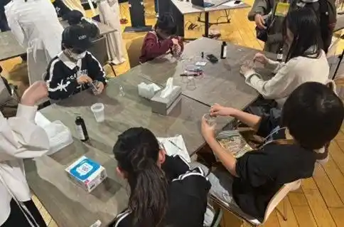 グリセリンなどの成分を計量スプーンで正確に量り取り、化粧品の基本的な作り方を本格的に体験しました。自分自身の手で成分を調合し、美容液を完成させると、専用のオリジナルボトルに入れて大切に持ち帰る姿が見られました。参加した子供たちからは、「こんなに簡単に作れるなんて思わなかった!」「おうちに帰って家族にプレゼントしたい」といった驚きと喜びの声が上がり、身近な美容の裏側にある科学の楽しさに触れる機会となりました。 |
