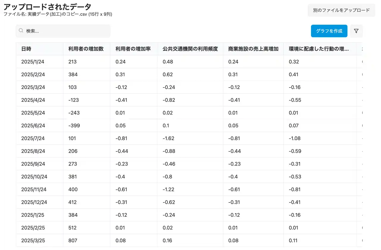 アップロードしたインパクトデータを基にしてグラフを作成。 |