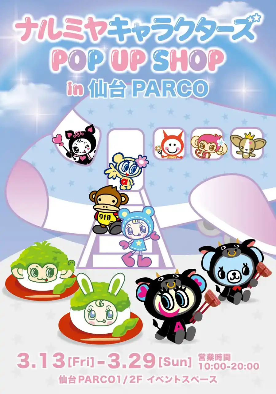 平成のジュニアブームを牽引したナルミヤキャラクターズが仙台と広島に大集合!キャラクターたちが それぞれのご当地名物に変身した限定グッズも登場します。 |