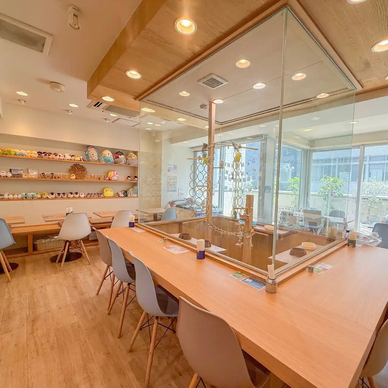 カフェと併設して鳥をモチーフにした雑貨コーナーもあり、品揃え豊富な鳥グッズを販売しております。衛生面の都合上、鳥さんとの同伴や、放し飼いはしておりません。 |