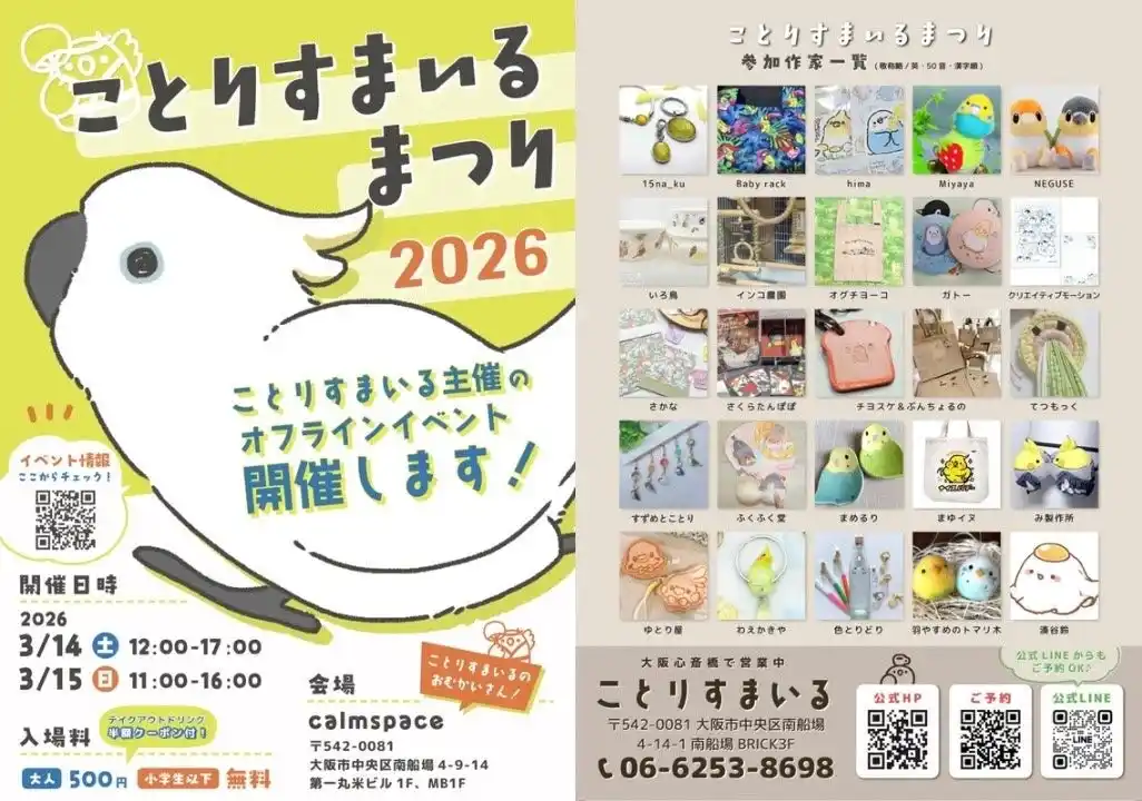 ★★★★★★鳥さんモチーフのグッズ販売会『ことりすまいるまつり』 開催★★★★★★ |