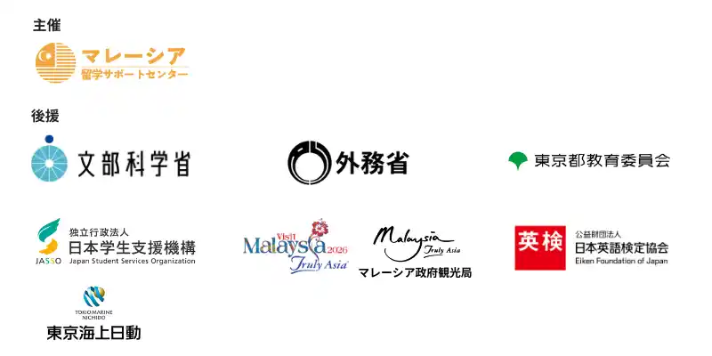 文部科学省 外務省 マレーシア大使館 マレーシア政府観光局 東京都教育委員会 独立行政法人日本学生支援機構(JASSO) 公益財団法人 日本英語検定協会 東京海上日動火災保険株式会社 |