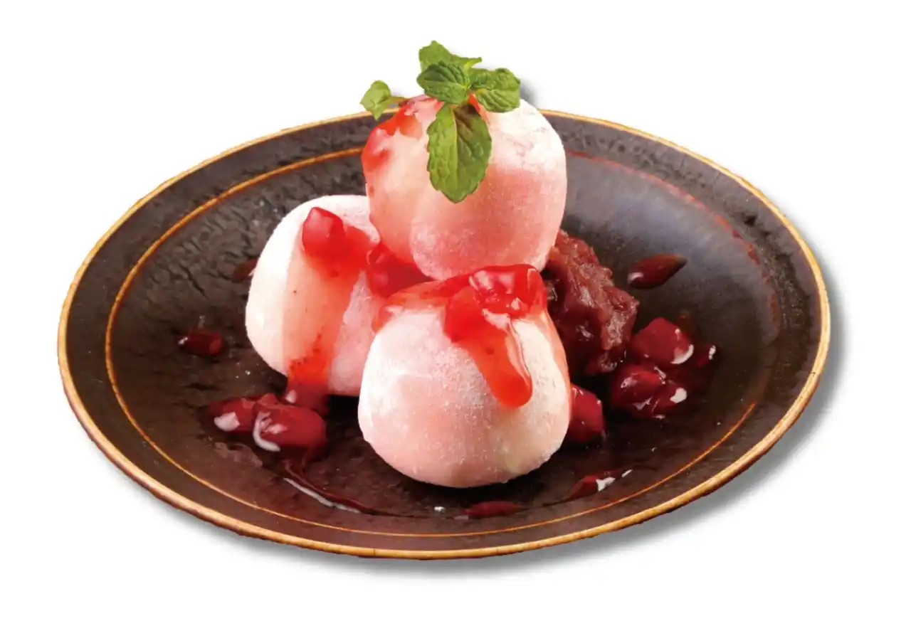 食事の締めには、春を感じるデザートもご用意。ひんやりとしたバニラアイスをもちもち食感の求肥で包み、甘酸っぱいイチゴを合わせた『イチゴ大福アイス』は、見た目にも華やかな一品です。食後のデザートとしてはもちろん、シェアしても楽しめる3個入りで、食事のひとときをさらに楽しく演出します。 |