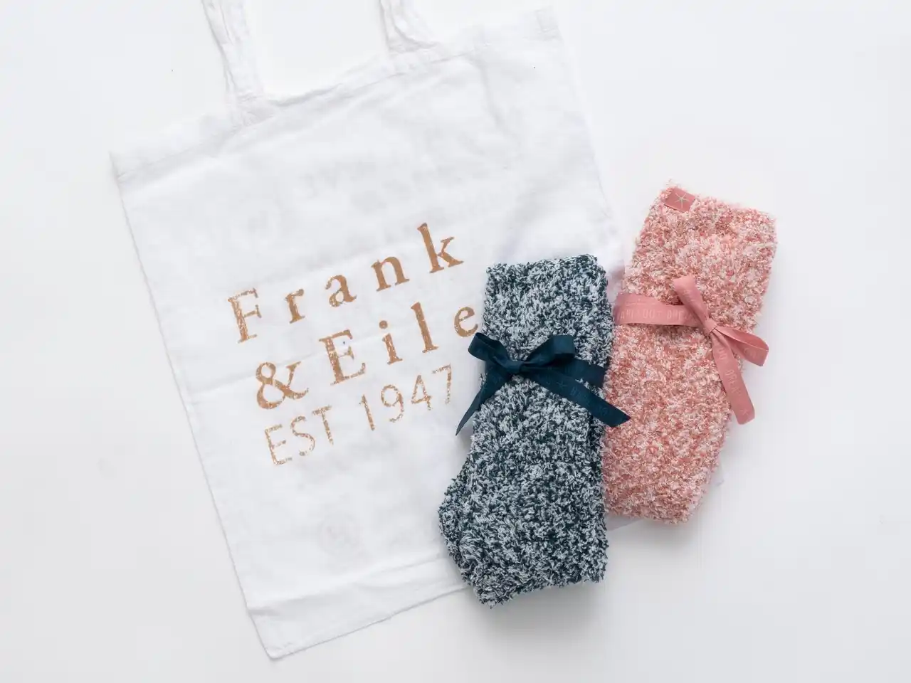 期間中、税込33,000円以上お買い上げかつ三越伊勢丹アプリクーポンをご提示いただきました先着50名さまにFrank & EileenのオリジナルトートバッグまたはBAREFOOT DREAMSのソックスのいずれか1つをプレゼントいたします。 |