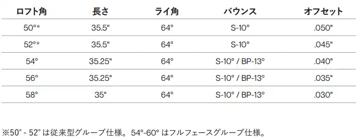 | Stick’emフォージドウェッジは以下のロフトで展開されます。 | |||||||||