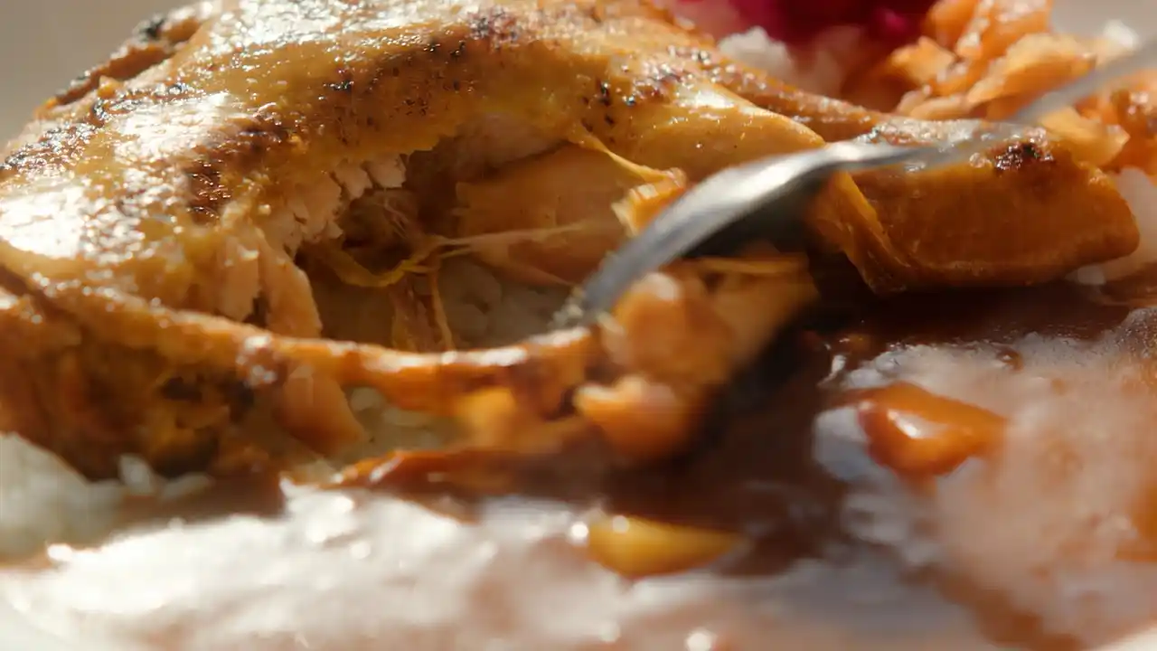 チキンは炭火で焼きじっくり丁寧に蒸し上げることで、スプーンでほろっとほぐれるほど柔らかく仕上げています。果物と野菜の甘みがたっぷり溶け込んだマイルドなカレーと、ほろほろで炭火香るチキンがマッチした、至福の味わいをご堪能ください。 |
