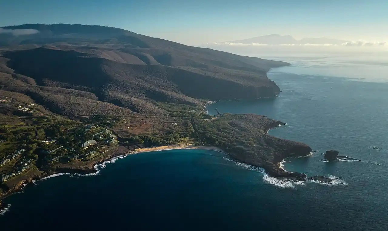 ホノルルから約25分のフライトでアクセスできるラナイ島は、“ハワイ最後の楽園”とも称され、観光客がアクセスできるハワイ諸島最小の有人島です。かつて世界最大のパイナップルプランテーションが広がっていたこの島は、現在では手付かずの自然と静寂に包まれたプライベートアイランドとして、訪れる人々に特別な体験を提供しています。総面積約364平方キロメートルのラナイ島には、内陸部に霧に包まれた山脈や野生のシカが生息する森林が広がり、沿岸の透明な海には豊かな海洋生物が生息しています。