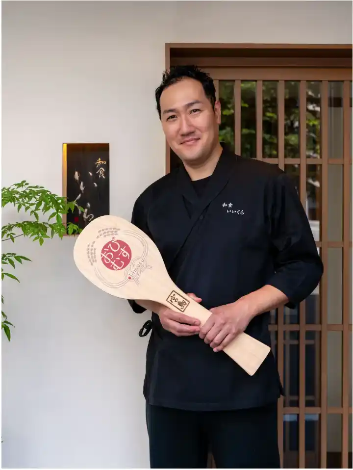 飯倉シェフは兵庫県ご出身。北新地の大人気割烹『纐纈』の番頭を経て独立、2017年末に南森町に『和食 いいくら』を開業されました。 |