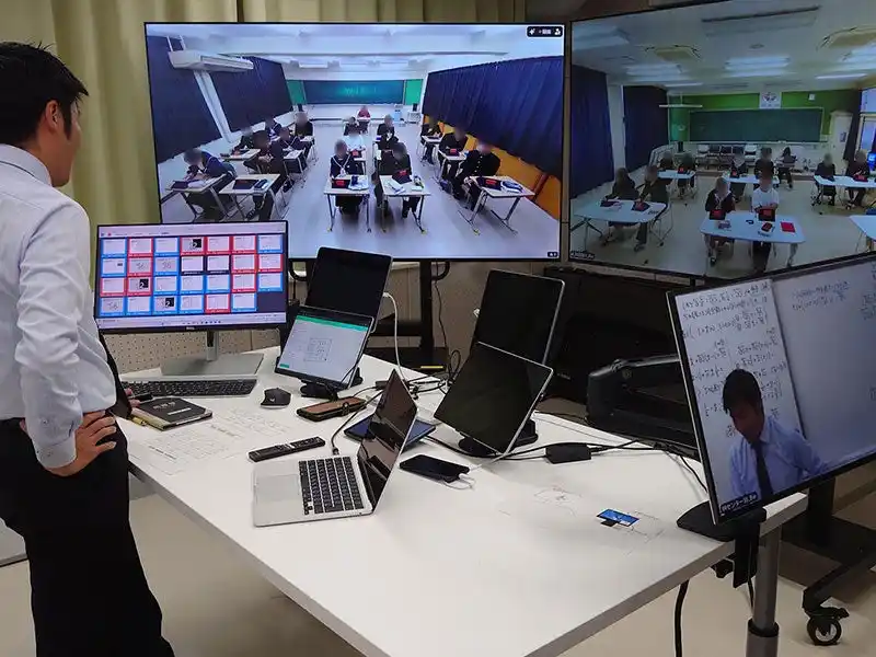 さらに2025年度からは、配信センターを拠点とした新たな「遠隔授業」を始動させました。充実した映像・音響機材に加え、リアルタイムな双方向性を実現する「MetaMoJi ClassRoom」を併用することで、居住地域に左右されることなく、個に応じた多様できめ細かな高校教育を受けられる環境を構築。全国の先駆的なモデルケースとなるよう、取り組みを推進しています。 |