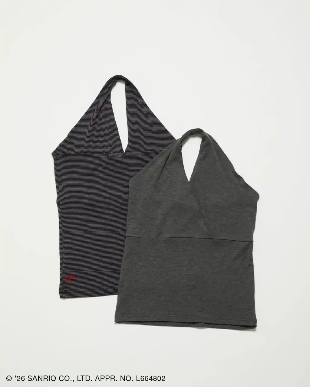 肩のラインをすっきりと魅せ、スタイリッシュさを引き出すホルターネックデザインのトップスは、後ろ身頃の左脇にさりげなくハローキティの刺繍を施した大人なムードを纏う一着。一枚でヘルシーにはもちろん、ビスチェ風にレイヤードした着こなしもおすすめです。 |
