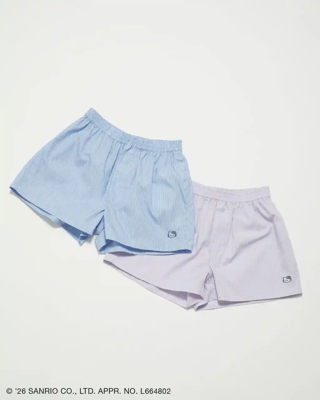 シンプルなデザインのボクサーパンツに、ハローキティの刺繍をさりげなくあしらったストライプ柄のショーツ。デニムやスラックスなどのインナーとしてプラスワンすることで、トレンド感溢れる着こなしへと導くアイテムです。ルームウェアとして着用いただくのもおすすめな一品。 |