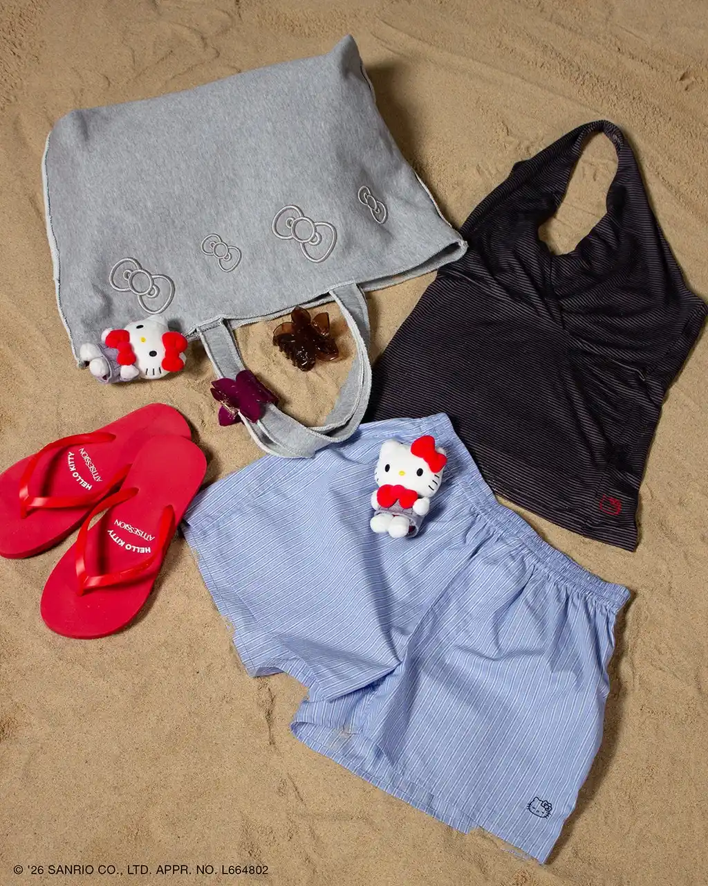 シンプルで洗練されたデザインに、世代を問わず長く親しまれている「ハローキティ」の愛らしさをさりげなく添えたコレクションは、夏のワンシーンはもちろん、普段使いにも心地よく寄り添うラインアップです。 |