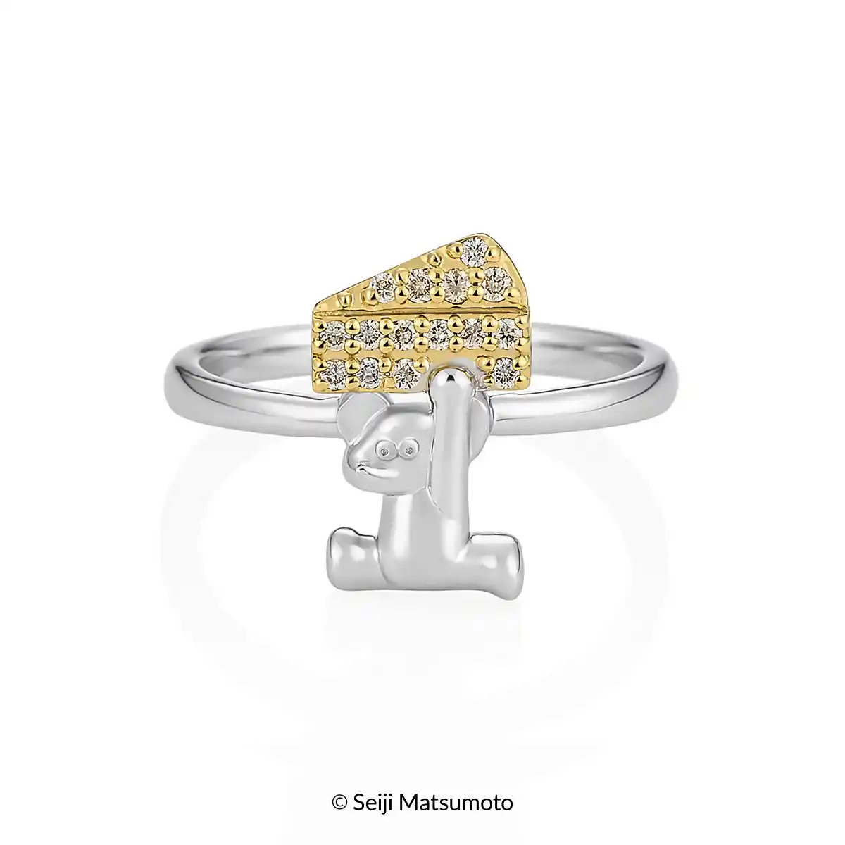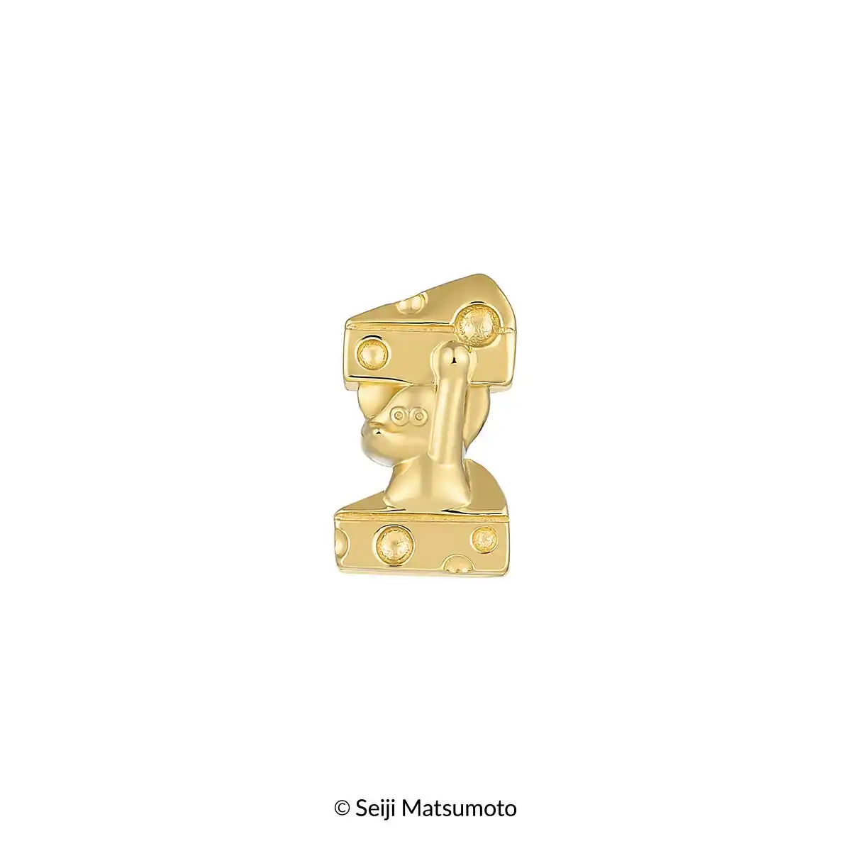 ANDYがチーズにすっぽりと埋もれる、思わず微笑んでしまうようなモチーフを、K18やプラチナといった本格素材で表現しました。ユーモラスなデザインでありながら、素材そのものが持つ重厚感と上質な輝きが、全体を引き締め、大人のジュエリーとして成立する佇まいに。遊び心をそのままに、素材で格を上げた特別なピースは、コレクションの中でもひときわ存在感を放ちます。 |