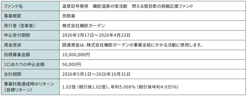 投資型クラウドファンディング募集概要 |