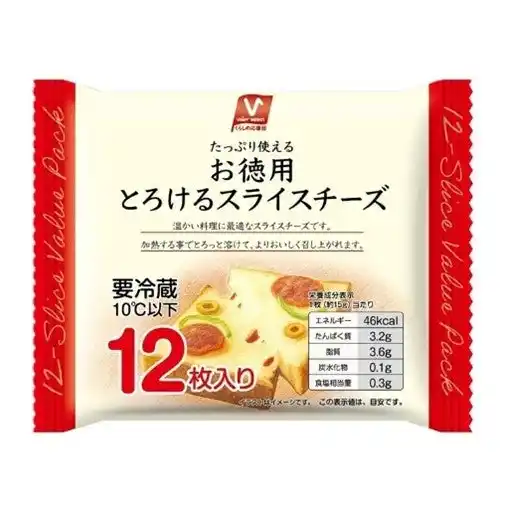 | ・たっぷり使える12枚入りのお徳用スライスチーズ。 | |||