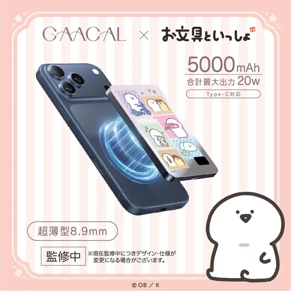 本コラボレーションでは、「“ほっとする可愛さ”を、毎日の持ちものに」をテーマに、大人の暮らしになじむやさしいカラーリングと、日常使いしやすい実用性にこだわったラインナップを展開。 ふと視界に入るたび気持ちがゆるむ--そんな『お文具といっしょ』の世界観を、GAACALならではのガジェット&雑貨に落とし込みました。 |