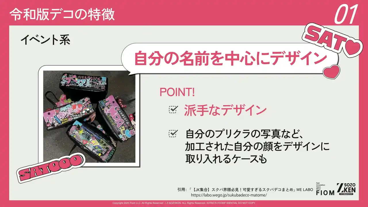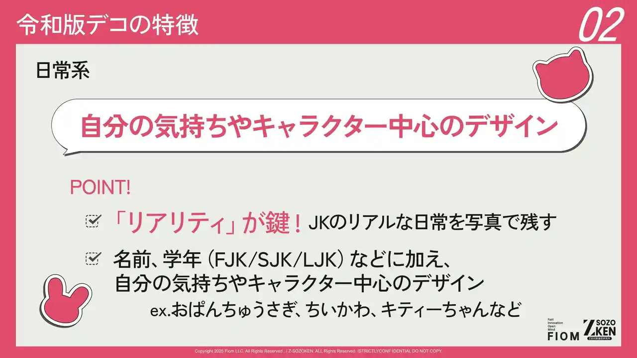 Z世代に特化したクリエイティブカンパニーFiom合同会社(本社:東京都渋谷区、代表社員:竹下洋平)が運営しているZ世代の実態や価値観を分析するシンクタンク、Z-SOZOKEN(Z世代創造性研究所)は、2026年3月4日(水)にZ-SOZOKEN THINKTANK 最新調査研究レポートの第3弾として『Z世代のデコ文化』についての調査研究レポートの第5章インサイトサマリー「令和のデコ文化の裏側」をリリースしました。 |