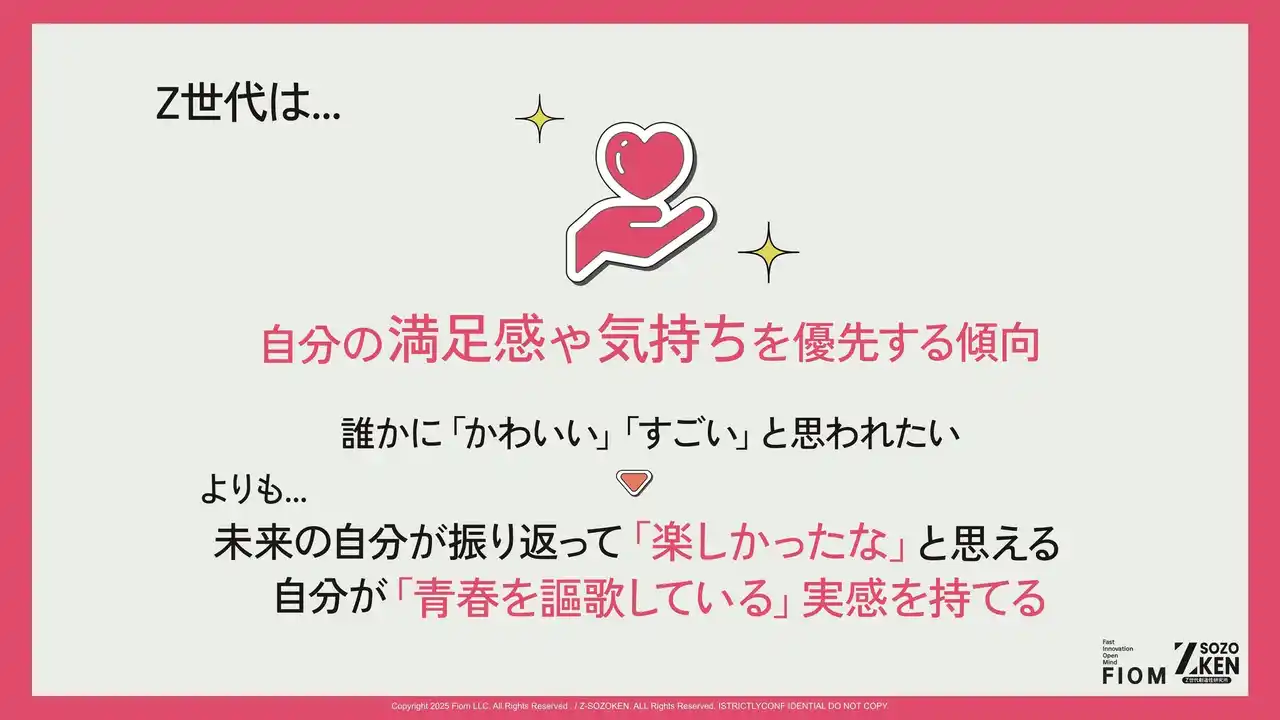 「Z-SOZOKEN」とはZ世代向けクリエイティブカンパニーFiom合同会社が運営しているZ世代同世代目線による分析で新たなインサイトを発掘、探求するZ世代特化の次世代型シンクタンクです。 |