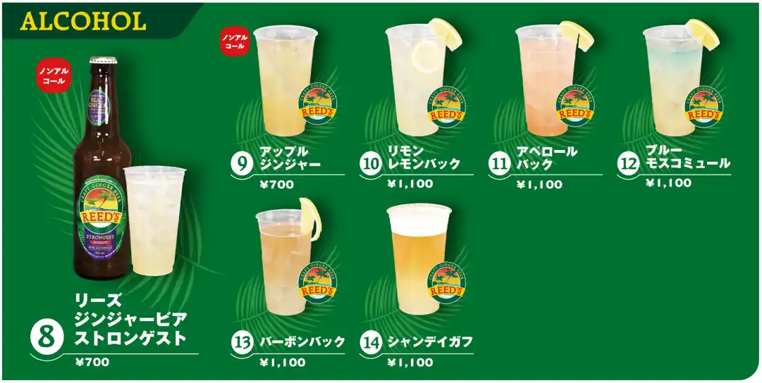 REED’Sの爽快なジンジャーの刺激を活かしたオリジナルメニューを提供します。 |
