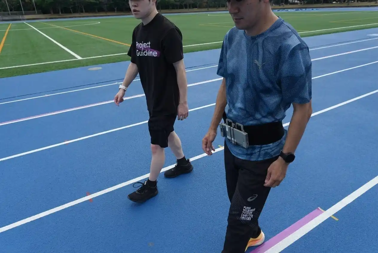 私は全盲ですが、今回の体験では一人で歩き、走っている感覚をしっかりと感じることができました。正直、怖さはまったくありませんでした。テクノロジーのおかげで安心して前に進むことができ、風を感じながら走る時間はとても気持ちよかったです。全盲でも晴眼者の方と同じフィールドで走れることを通じて、多くの人に「できる可能性」を知ってもらえたら嬉しいです。障害の有無に関係なく、一緒に挑戦できる機会が広がることを期待しています。 |