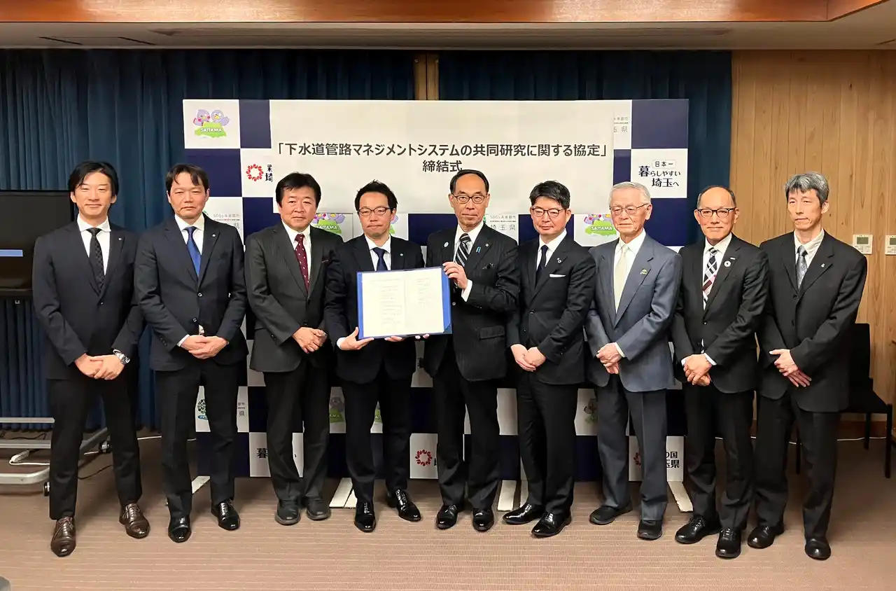 | 株式会社染めQテクノロジィ(本社:茨城県猿島郡五霞町、代表取締役:菱木貞夫)は、埼玉県が公募した「埼玉県下水道管路マネジメントシステム共同研究」*¹において、当社を含む民間事業者6社で構成される共同研究体が選定され、本日2026年3月10日(火)埼玉県庁にて、埼玉県および埼玉県下水道公社と8者にて共同研究協定を締結しましたことをお知らせいたします。 | |||