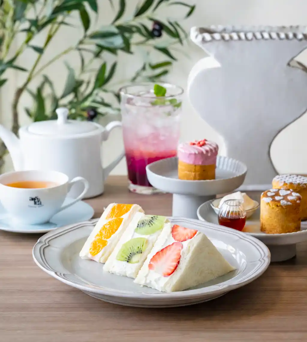 フルーツサンドの果実の甘みと生クリームのコクを引き立てるため、紅茶の香りや渋みのバランスを考えたペアリングを提案。 |